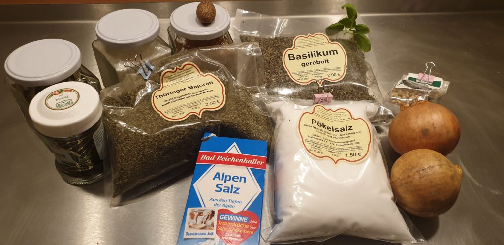 Die Gewürzangaben beziehen sich IMMER auf 1 Kilogramm Masse!