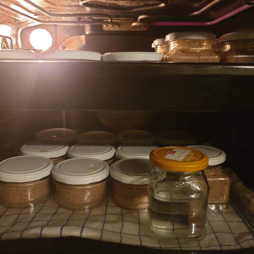 Nun wird die Masse in Gläser abgefüllt und mit den passenden Deckeln verschlossen, dabei unbedingt auf einen sauberen Glasrand achten! Wurstreste zwischen Glas und Deckel, können das Vakuum verhindern.